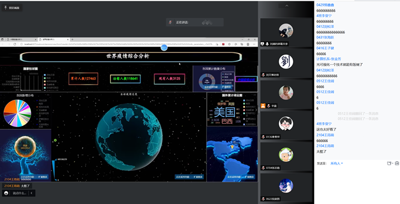 随后,刘老师介绍了专业课程体系,并向同学们重点介绍了师资团队。本专业拥有一支实力雄厚的高水平师资队伍,既有德高望重的骨干教师,也有初露锋芒的青年教师,是一只肯干、务实、业务精湛、素质过硬的优秀教学团队。随后分享了各位老师作为竞赛指导教师所取得的荣誉与奖项,让参加讲座的学生心生敬佩和向往。结合大数据人才就业趋势,分析大数据专业核心岗位以及各个岗位月薪对比。刘老师在讲座过程中向同学们展示大量教学过程中的真实案例,通过现场演示模式识别实验,与学生互动提问,精彩的讲座深深吸引着在线同学。